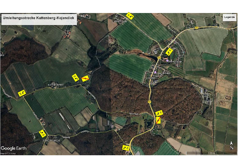 Verkehrsanordnung; Sicherung einer Arbeitsstelle; Kattenberg / Kojendiek; 20.10.2025 bis 27.02.2026; geändert ab 27.10.2025