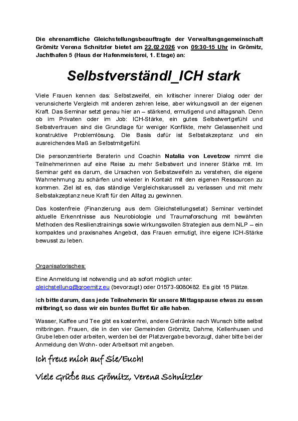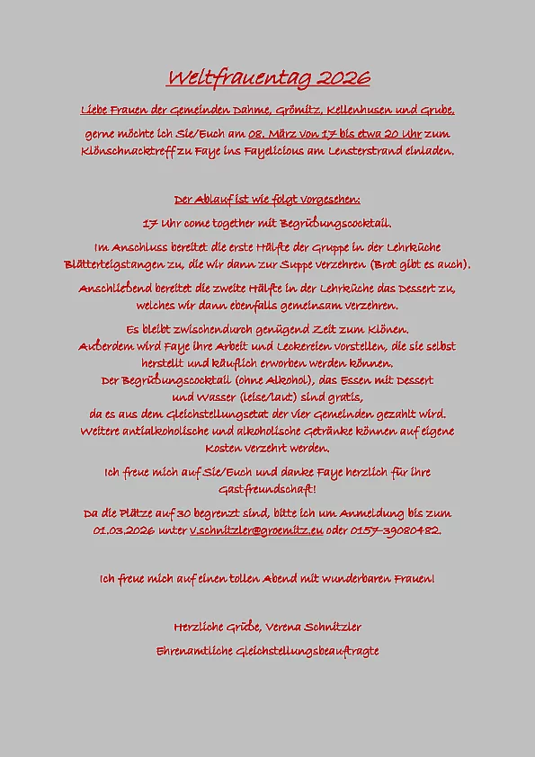 Liebe Frauen der Gemeinden Dahme, Grömitz, Kellenhusen und Grube,
